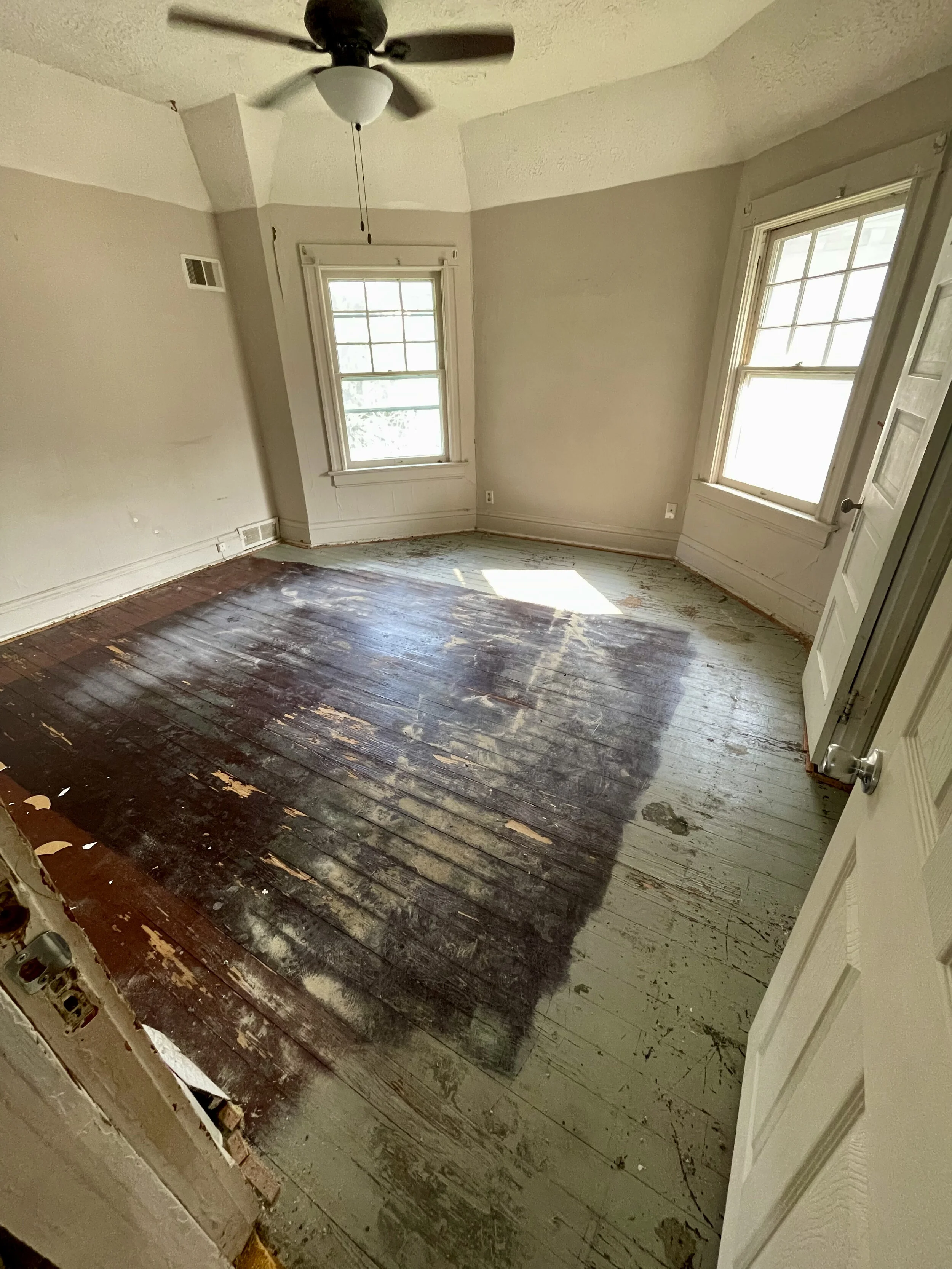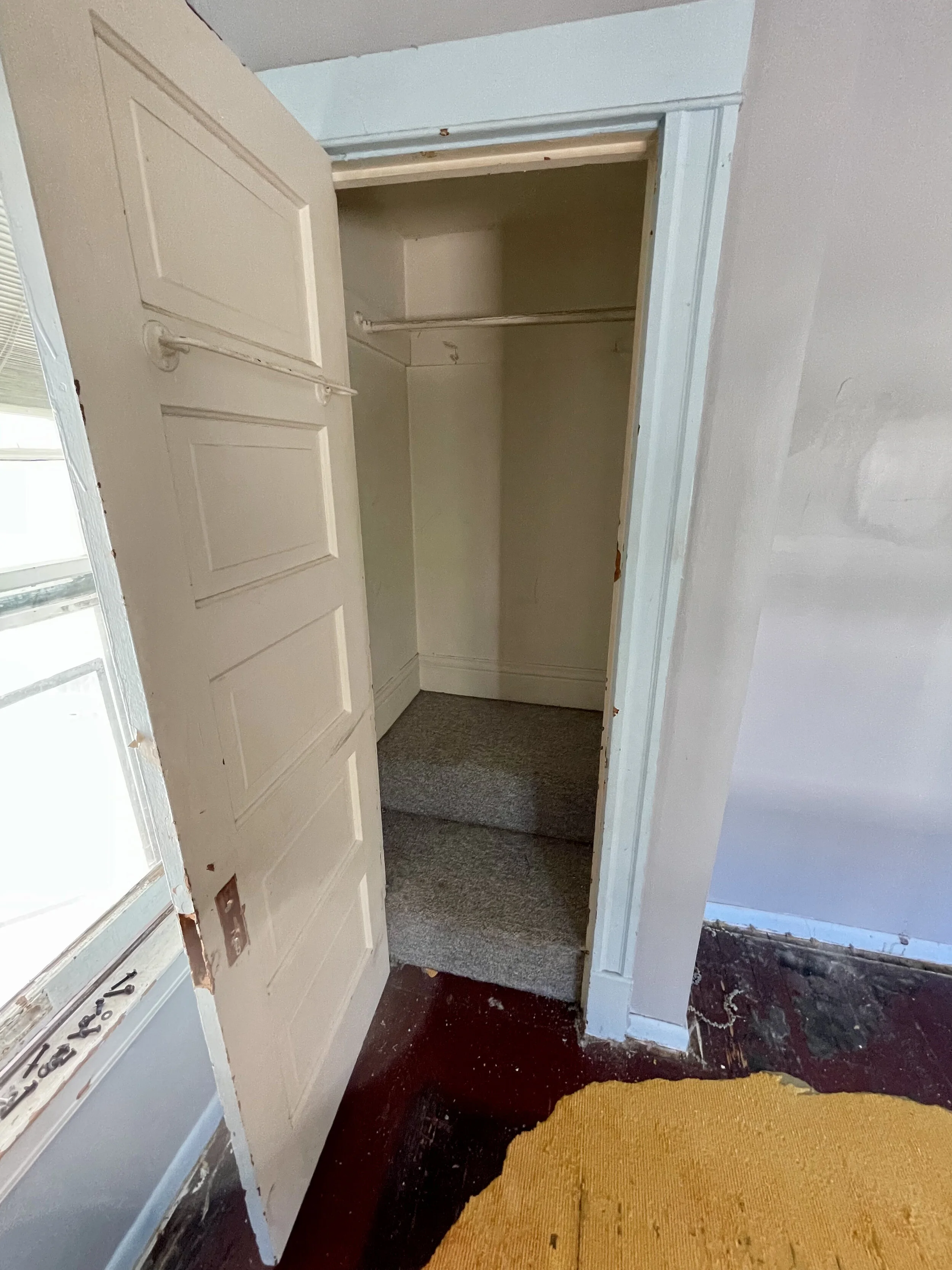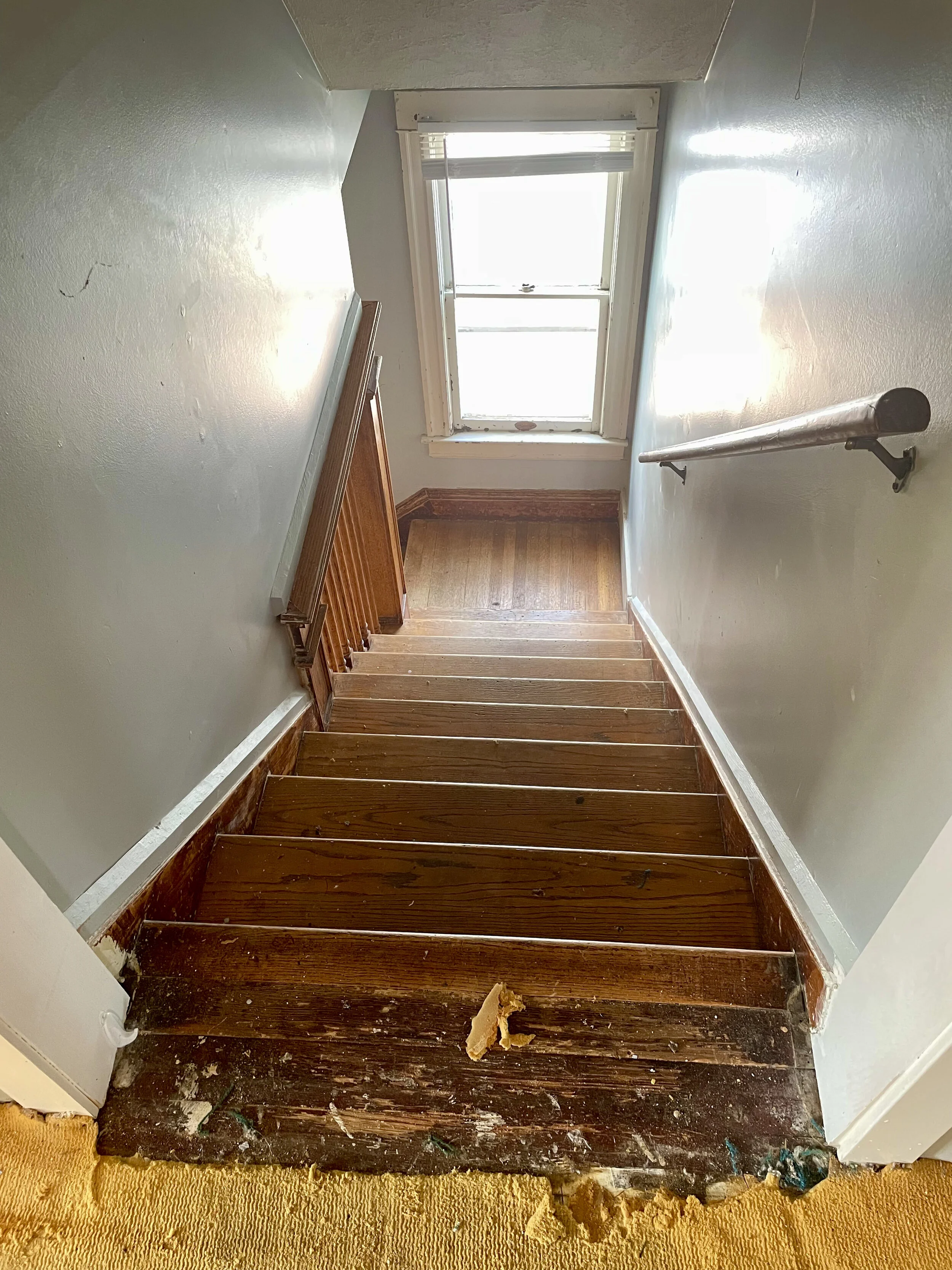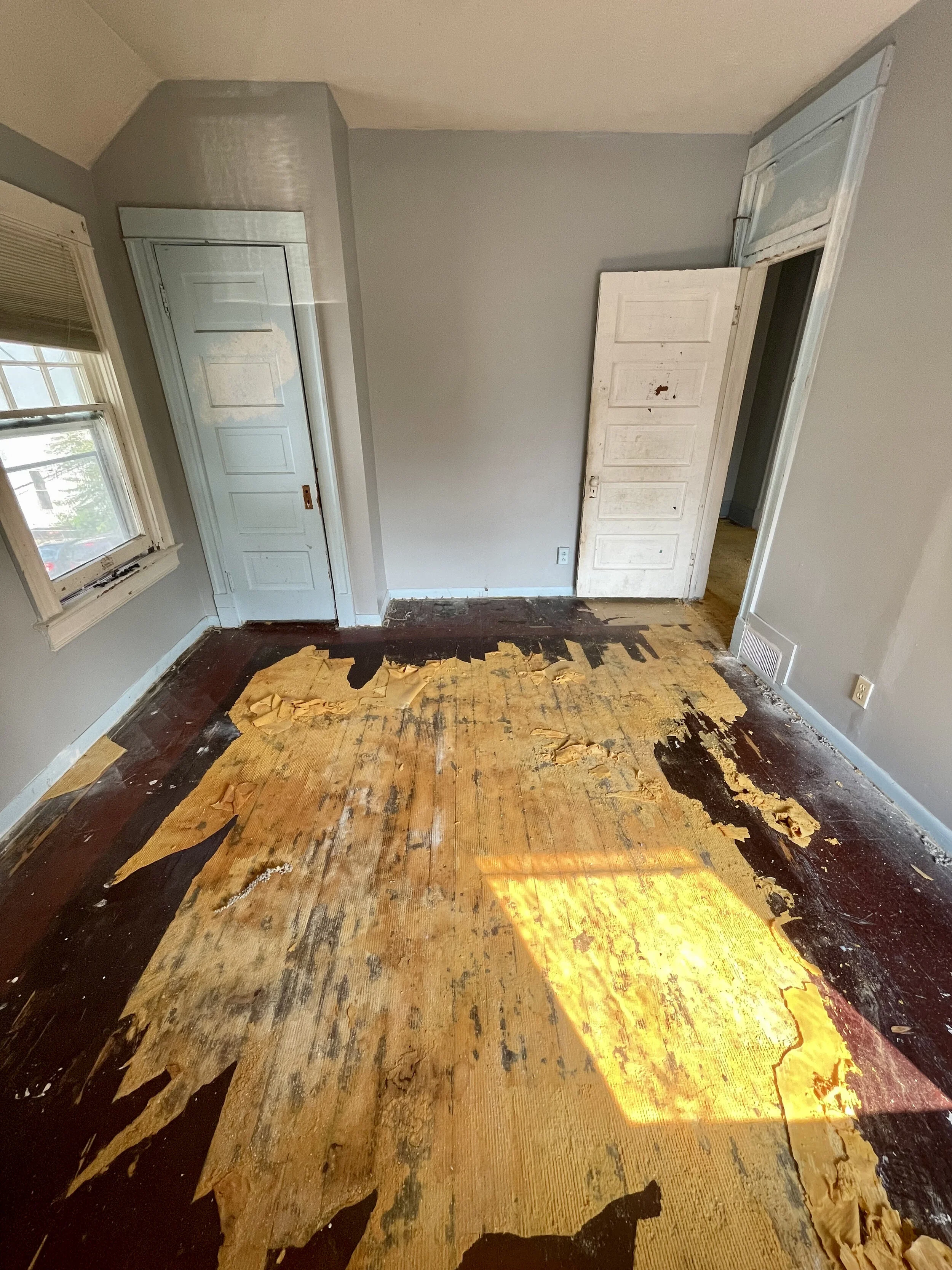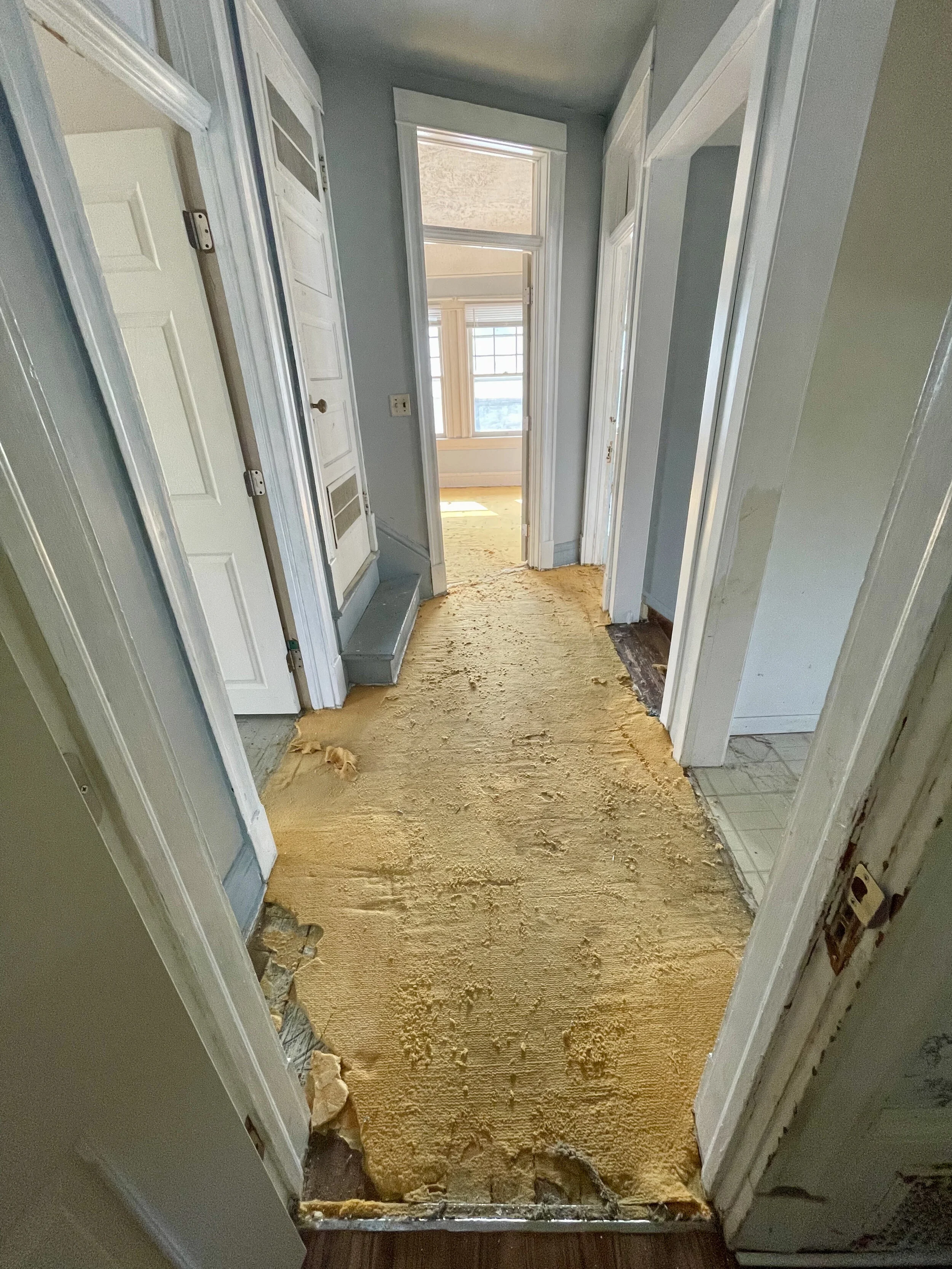 I’m working on the cutest historic home! It is a ubiquitous historic home layout with entertaining rooms on the main floor and four bed chambers on the second floor. This home even has a bonus attic bedroom, which I love so much. The work to be done on the home is mostly aesthetic so I thought it might be a fun project for you to follow as the bones and systems are quite good. There are pet stains, some of the worst crumbling yellow carpet pad I’ve seen and stubborn old linoleum and adhesive that all must go.