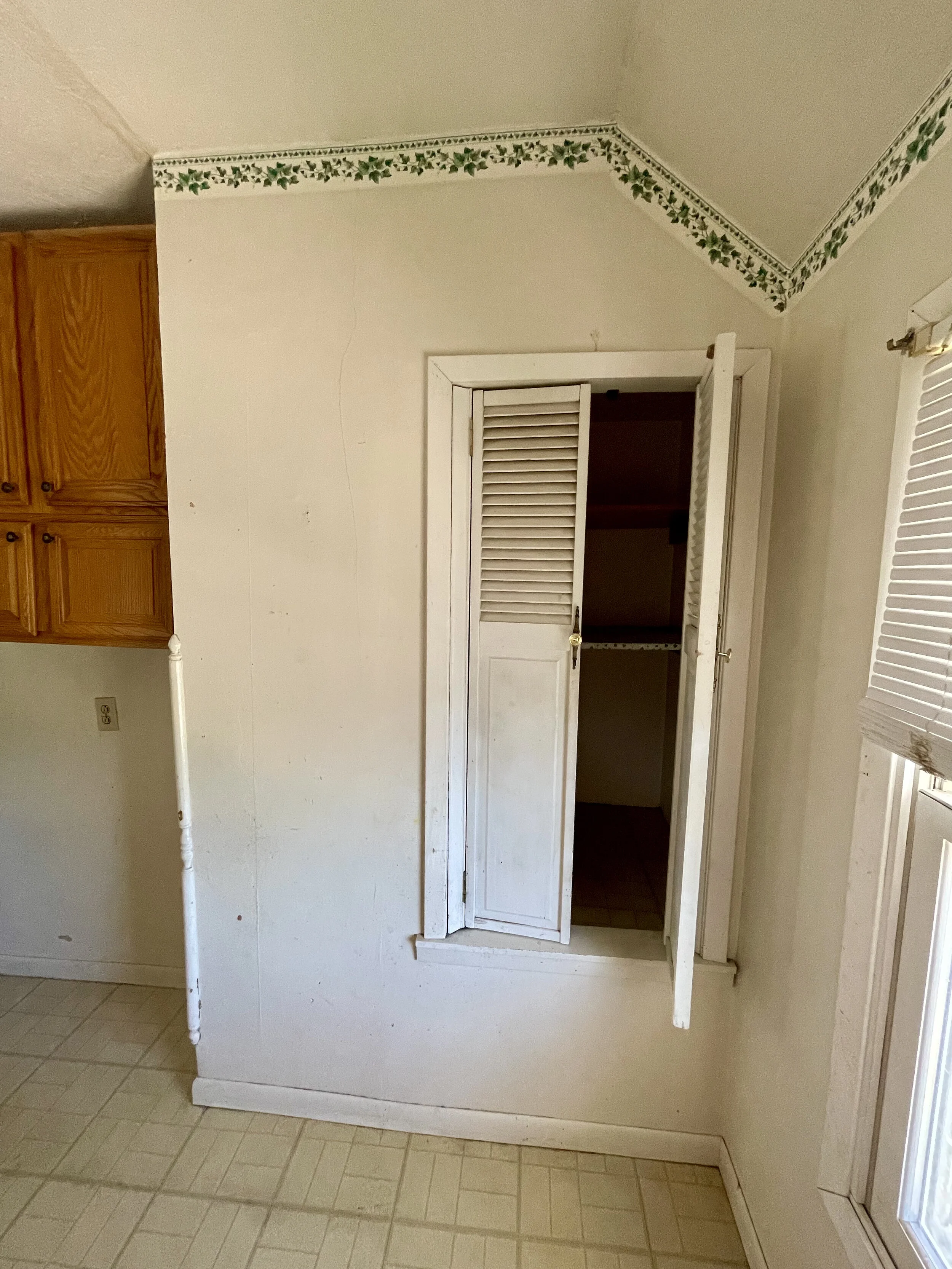 Chamber four, the smallest of the bedrooms, was a former laundry room. While consulting with the home owner I suggested the laundry be relocated to an area off of the kitchen on the main floor. I’m excited for this transformation.